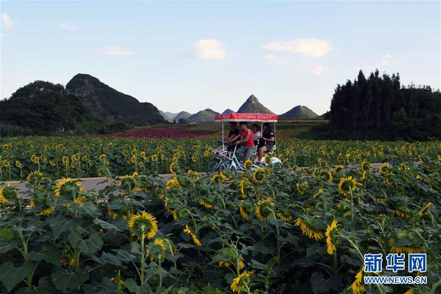 游客在云南罗平七彩花田游览观景(9月5日摄)。 新华社记者杨宗友摄