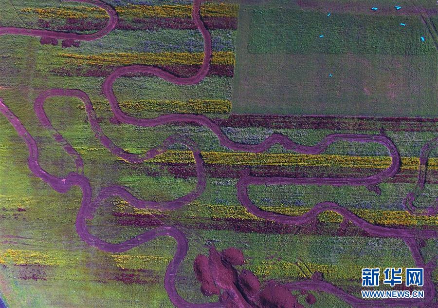 云南罗平的七彩花田(9月5日无人机拍摄)。 新华社记者杨宗友摄