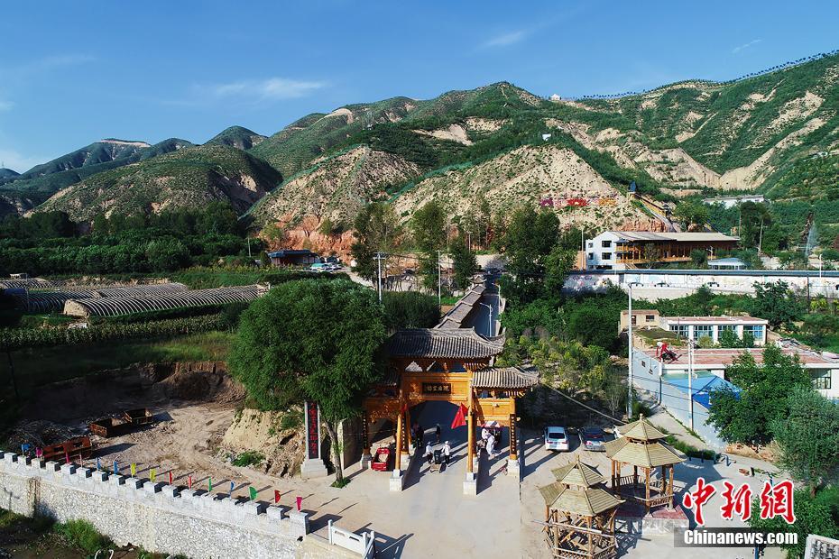 这里曾是当地民众眼中“猪嫌狗不爱”的地方,而今,昔日的“碱沟滩”经过绿化和改造,变成了今天的“世外桃源”。9月8日,行走中国——2018海外华文媒体海东行暨国内知名媒体看海东在青海省海东市启动,来自海内外50余家知名媒体共同走进海东市,中外媒体代表将在未来一周针对青海的文化旅游、生态环保、藏文化产业、精准扶贫、基础设施建设、新能源发展等进行重点参访,见证青海改革开放40年来的沧桑巨变。图为航拍青海省海东市乐都区高庙镇新庄村的卯寨景区。 中新社记者 孙睿 摄