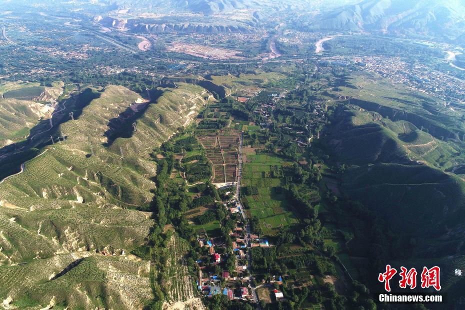 9月8日,行走中国——2018海外华文媒体海东行暨国内知名媒体看海东在青海省海东市启动,来自海内外50余家知名媒体共同走进海东市,中外媒体代表将在未来一周针对青海的文化旅游、生态环保、藏文化产业、精准扶贫、基础设施建设、新能源发展等进行重点参访,见证青海改革开放40年来的沧桑巨变。图为航拍海东市乐都区一角,绿化面积逐年增长。 中新社记者 孙睿 摄