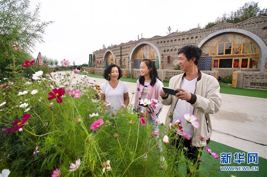 游客在宁夏固原市西吉县吉强镇龙王坝村参观游玩(8月30日摄)。