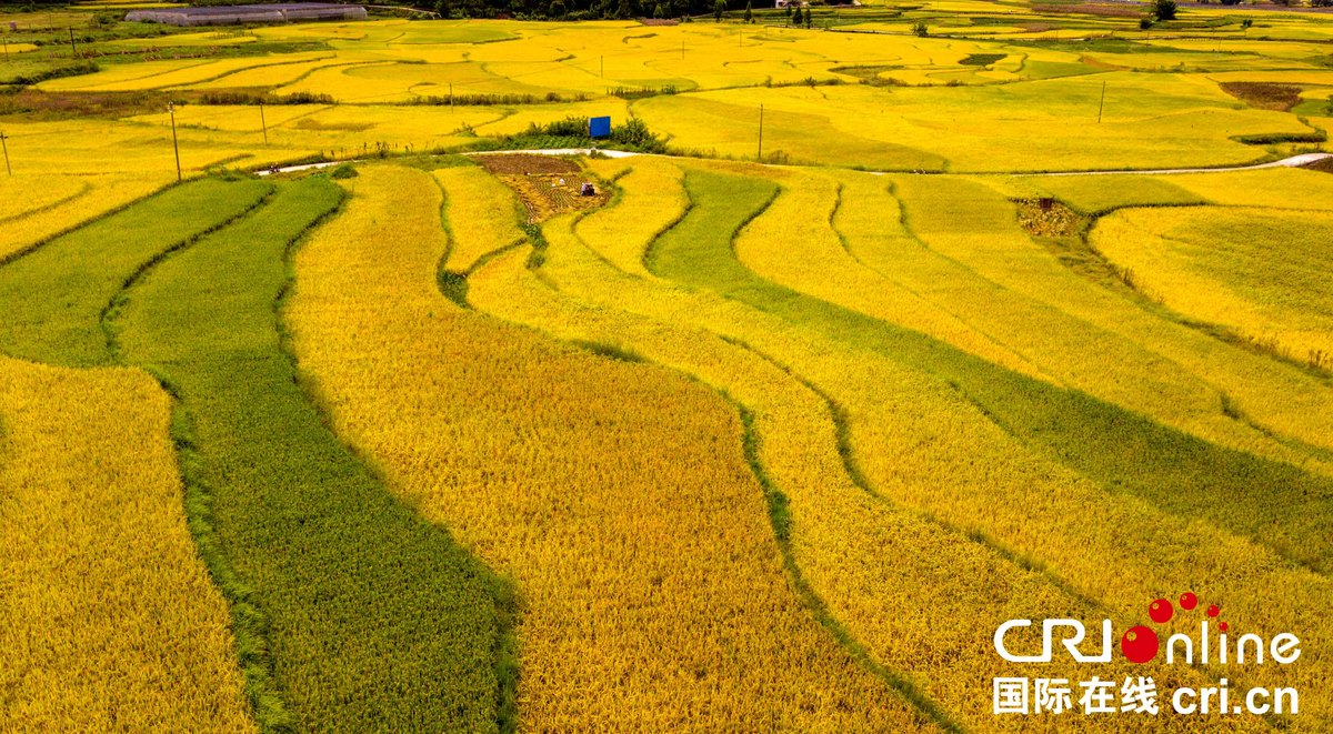 航拍务川县黄都镇详川广场稻谷成熟 (摄影 田东)