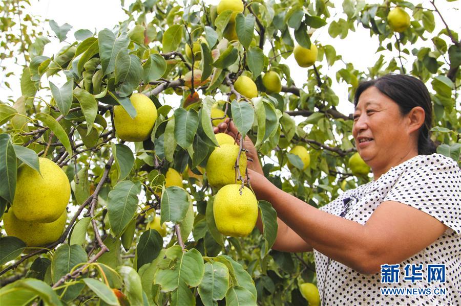 9月11日,李奉先村果农在采摘梨。 近日,河北省永清县林果专业村李奉先村果实累累,果农喜获丰收。近年来,河北省永清县坚持走生态优先,绿色发展之路,瞄准首都优质果品市场,积极引导农民优化种植结构,目前,全县优质林果种植面积达20万亩,年产葡萄、梨、桃等优质水果24万吨,产值超过6亿元,有力促进了农民增收致富,助力乡村振兴。 新华社记者 李晓果 摄