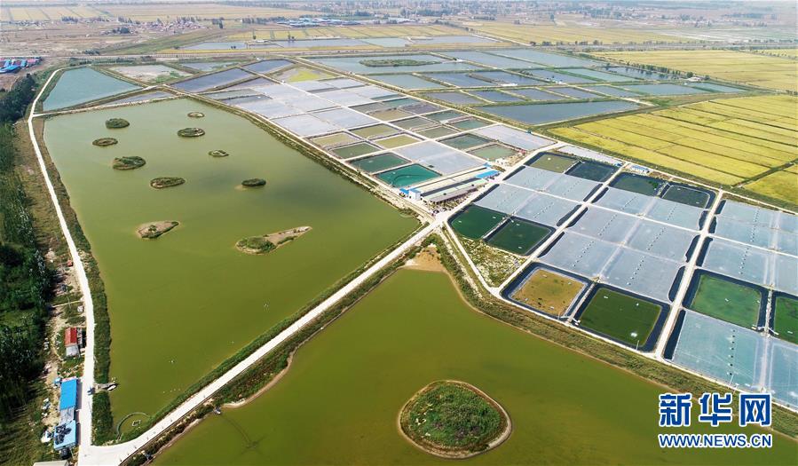 这是宁夏贺兰县蓝湾生态园南美对虾养殖基地(9月11日无人机拍摄)。