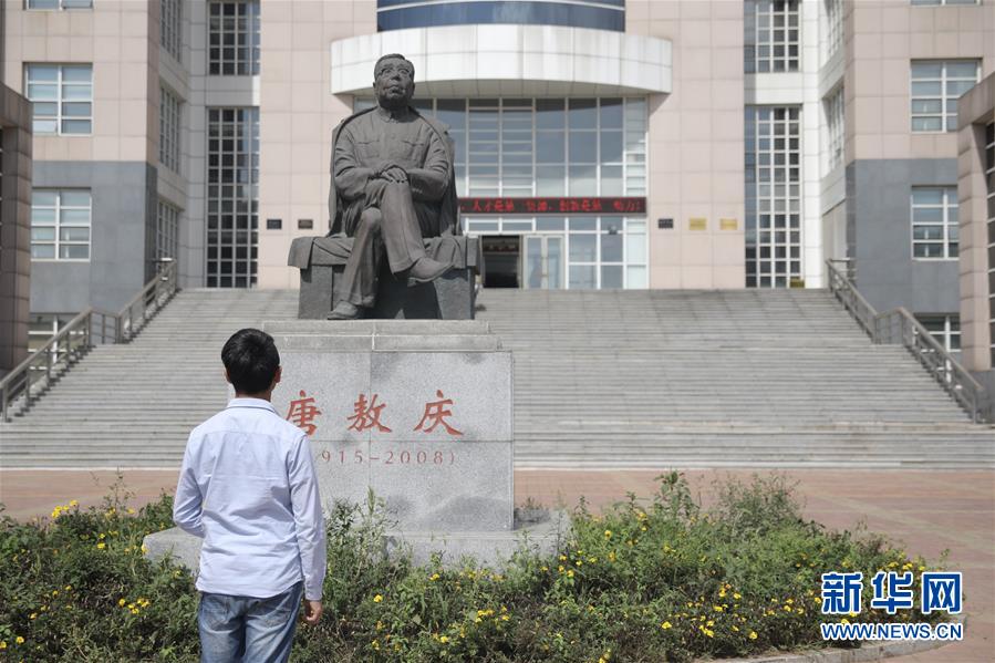吉林大学化学学院一名学生在唐敖庆教授的雕像前(9月6日摄)。 1952年,北京,时任中央教育部副部长曾昭抡正与爱徒谈心,希望他到东北人民大学(吉林大学前身)去创办化学系。此时距他从美国回到北京大学任教刚刚两年。爱徒毫不犹豫,“我服从组织分配”。这一去,就是30多年。 同年10月中旬,还有一位20岁的年轻人,从温暖繁华的黄浦江畔启程。他坐了两天一夜的火车,然后又转乘马车,一路向北……从此就是一生。 若干年后,不断有学校开出优厚条件,邀请吉林大学化学学院女院士去南方工作。她委婉地说,“我听老师的”。直到今天,她还和她的老师一道,留在东北,留在吉林大学。 他们是唐敖庆、徐如人、于吉红。三代院士,听从祖国召唤,师生接力、薪火相传,把人生中最美的年华奉献给了祖国的科研和教育事业,在遥远的东北写下一段动人故事。 新华社记者孟含琪摄