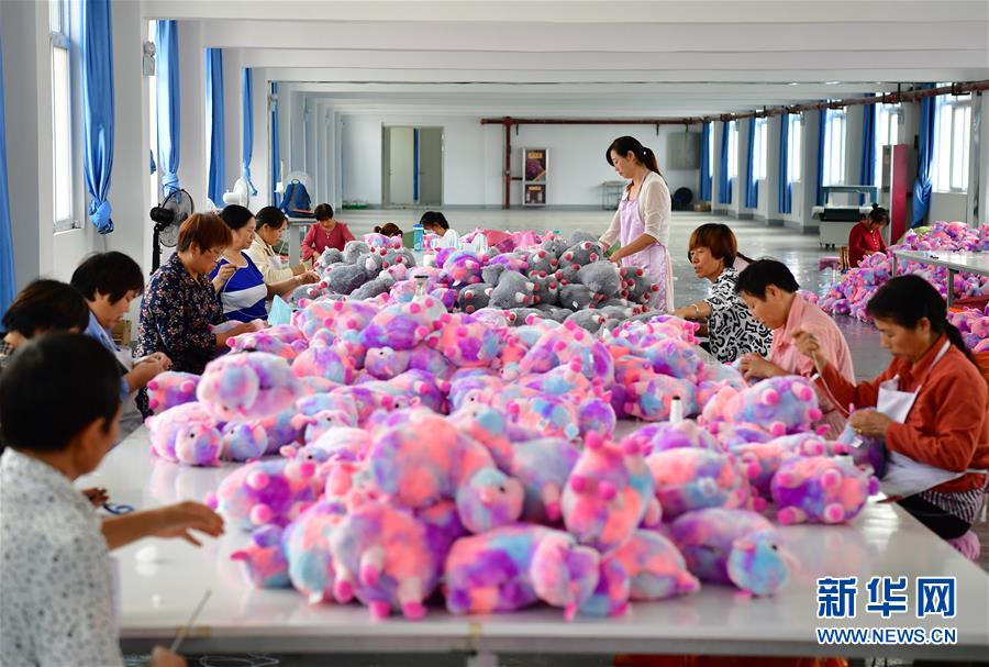 9月11日,在位于安康市汉滨区谭坝镇松坝社区的哈德宝毛绒玩具厂车间内,工人在缝制毛绒玩具。 2017年以来,陕西省安康市在苏陕协作对口城市江苏省常州市的协助下大力发展毛绒玩具文创产业,兴办毛绒玩具社区工厂,帮助搬迁群众和困难群众实现就近就业。截至目前,安康市已有25家毛绒玩具企业正式投产,吸纳就业2298人,其中贫困劳动力675人。 新华社记者 邵瑞 摄