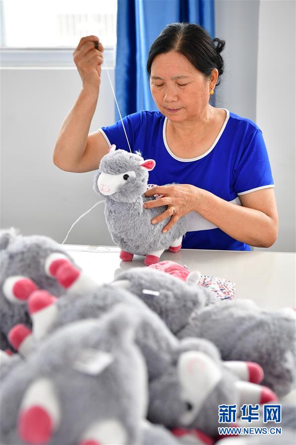 9月11日,在位于安康市汉滨区谭坝镇松坝社区的哈德宝毛绒玩具厂车间内,方云珍在缝制毛绒玩具。 2017年以来,陕西省安康市在苏陕协作对口城市江苏省常州市的协助下大力发展毛绒玩具文创产业,兴办毛绒玩具社区工厂,帮助搬迁群众和困难群众实现就近就业。截至目前,安康市已有25家毛绒玩具企业正式投产,吸纳就业2298人,其中贫困劳动力675人。 新华社记者 邵瑞 摄