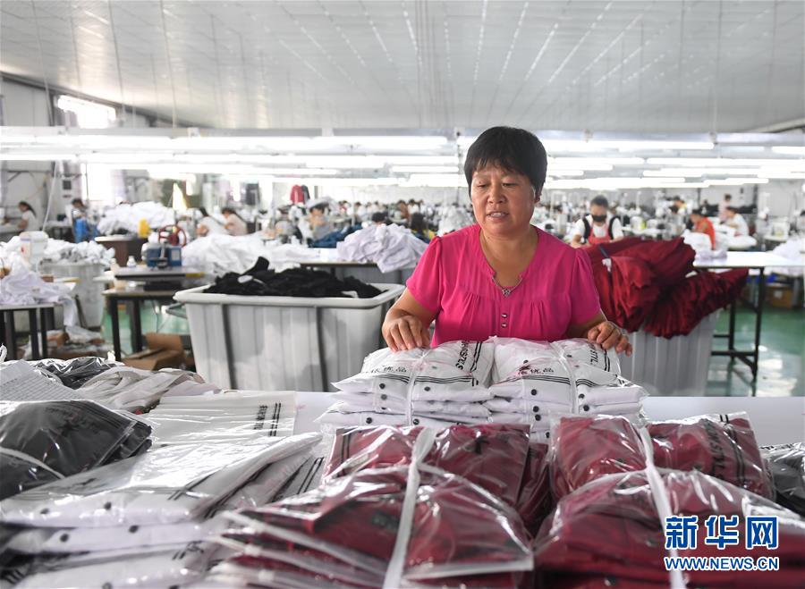9月11日,在巨鹿县小吕寨镇西大韩村一“就业扶贫车间”内,一名工人在整理服装成品。 近年来,河北省巨鹿县结合脱贫攻坚工作实际和贫困群众需求,以实现就地就近转移就业为目标,积极打造“就业扶贫车间”。目前,巨鹿县“就业扶贫车间”涉及服装、食品、手工艺品、种植等多个产业,直接带动建档立卡贫困人口200余人实现就业。 新华社记者 牟宇 摄