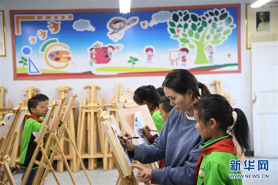 9月11日,重庆市南川区石墙镇中心小学学生在老师指导下练习绘画。 近年来,重庆市南川区积极引导乡村学校对校园操场、图书室、音乐室、实验室等场所的设施设备进行有效整合,开展丰富多彩的课外活动,丰富农村孩子生活,引导学生培养健康向上的兴趣爱好。 新华社记者王全超摄
