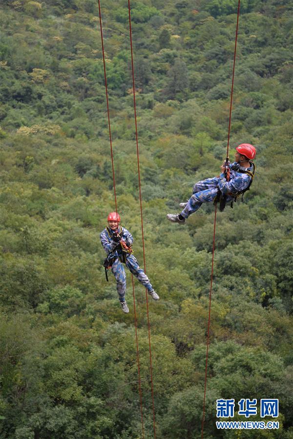 9月11日,户外运动爱好者在鸡公岭飞拉达攀岩户外运动基地攀岩。 鸡公岭飞拉达攀岩户外运动基地位于湖北省恩施土家族苗族自治州建始县花坪镇境内,拥有三条长为650米、850米、900米的攀岩线路,垂直距离距江面约500多米,吸引了众多爱好者前来体验。 新华社发(杨顺丕 摄)