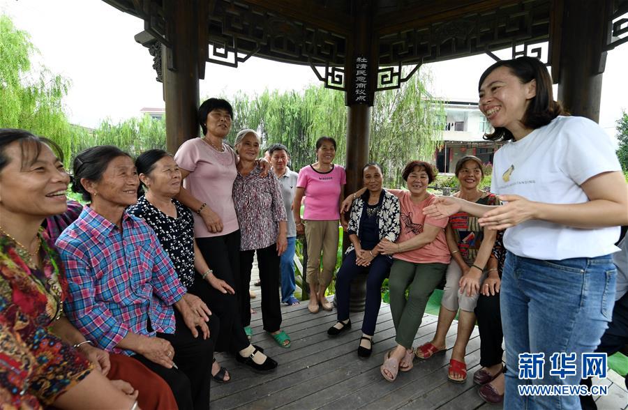 9月11日,邵武市纪委驻村第一书记欧阳华珍(右一)在村社情民意商议点向妇女征求文化设施建设意见。 近年来,福建省邵武市水北镇大乾村充分发挥村党支部的战斗堡垒作用,因地制宜发展食用菌、优质瓜果种植等特色农业,带领村民脱贫致富。2017年,村民人均收入达17200元,这个市级贫困村全部实现脱贫。 新华社记者张国俊摄