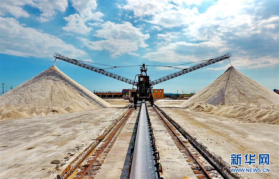 9月10日,长芦盐区大清河盐场的机械设备在进行秋盐收获作业(无人机拍摄)。 新华社记者 杨世尧 摄