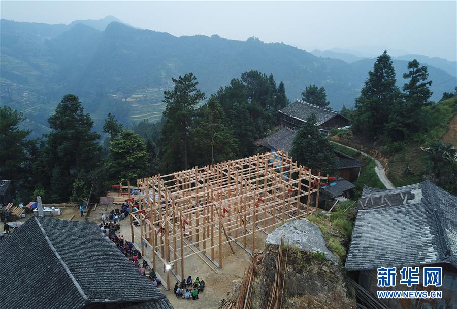 金秋时节,贵州省丹寨县各个苗族村寨迎来新建吊脚楼的“立房”高峰期。在苗族吊脚楼建房过程中,“立房”是吊脚楼基本建成的标志,“立房”当天, 整个寨子村民都来帮忙,齐心协力建新楼。