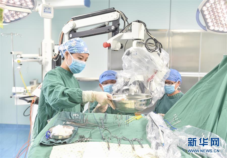 9月12日,在福建医科大学附属第一医院闽南医院——泉州市泉港区医院医联体,福建医科大学附属第一医院派驻的骨科主任、副主任医师黄宇(前右二)在为患者进行脊柱手术。新华社记者 宋为伟摄