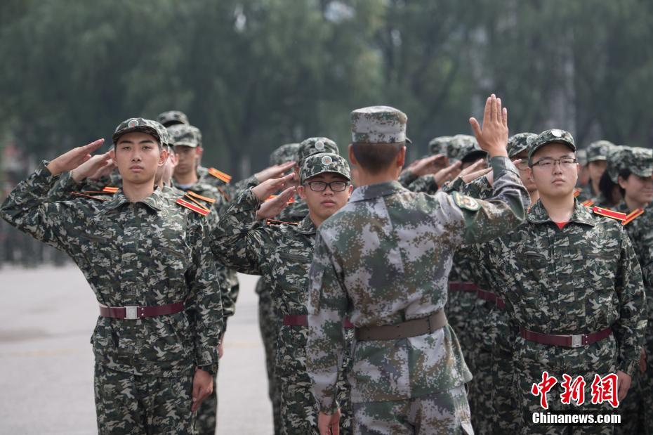 教官手把手教大学新生敬军礼。 韦亮 摄