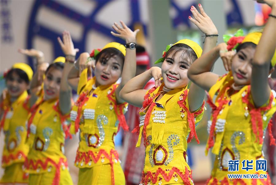 9月12日,在广西南宁国际会展中心,来自缅甸的演员在表演节目。 新华社记者 陆波岸 摄