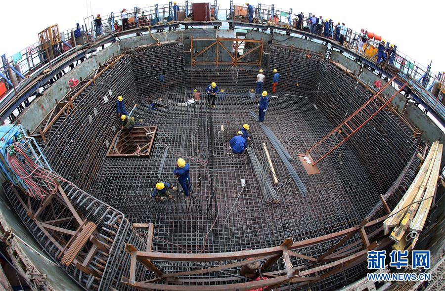 9月12日,工人在沪通长江大桥28号墩主塔上施工。 当日,沪通长江大桥28号墩主塔施工至54节,高度达322米,28号墩主塔即将封顶。 沪通长江大桥连接江苏南通市和张家港市,主跨1092米,建成后将成为长三角地区沿海重要的铁路、公路过江通道,预计明年10月完工。 新华社发(许丛军 摄)