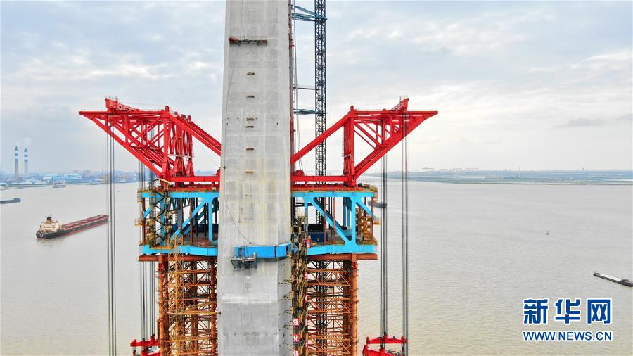 沪通长江大桥28号墩主塔即将封顶
