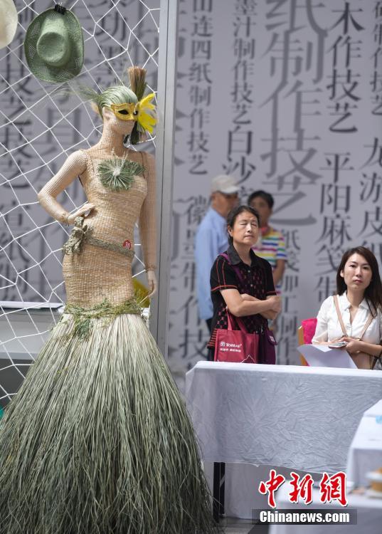 9月13日,参展的草编“姑娘”惟妙惟肖。当日,第五届中国非物质文化遗产博览会在山东济南开幕,来自全国的优秀非物质文化遗产项目及传承人现场展示非遗精华,让观众近距离观赏“活态非遗”的魅力。中新社记者 张勇 摄