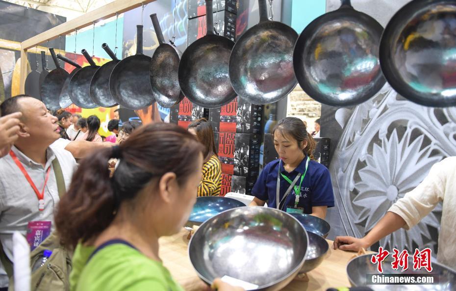 9月13日,章丘铁锅吸引观众目光。当日,第五届中国非物质文化遗产博览会在山东济南开幕,来自全国的优秀非物质文化遗产项目及传承人现场展示非遗精华,让观众近距离观赏“活态非遗”的魅力。中新社记者 张勇 摄