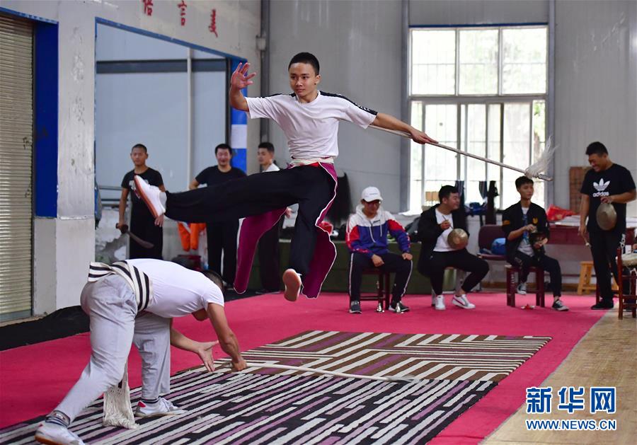 9月12日,“童子班”学员在练功房内排练传统剧目。 汉剧地方剧种汉调二黄是陕西第二大剧种,至今已有300余年历史,于2006年被列入第一批国家级非物质文化遗产名录。为更好地保护和传承汉调二黄,陕西安康市自2013年起成立汉调二黄“童子班”,为选拔出的63名小学员提供专业和文化课程。 5年来,在安康汉调二黄研究院老、中、青三代艺术家和演员老师的悉心培育下,步入少年的“童子班”学员练就了扎实的基本功,技艺日臻成熟,开始排演多出传统剧目。未来,这些小学员们将更多地登上戏剧舞台,承担起汉调二黄传承与发展的重任。 新华社记者邵瑞摄