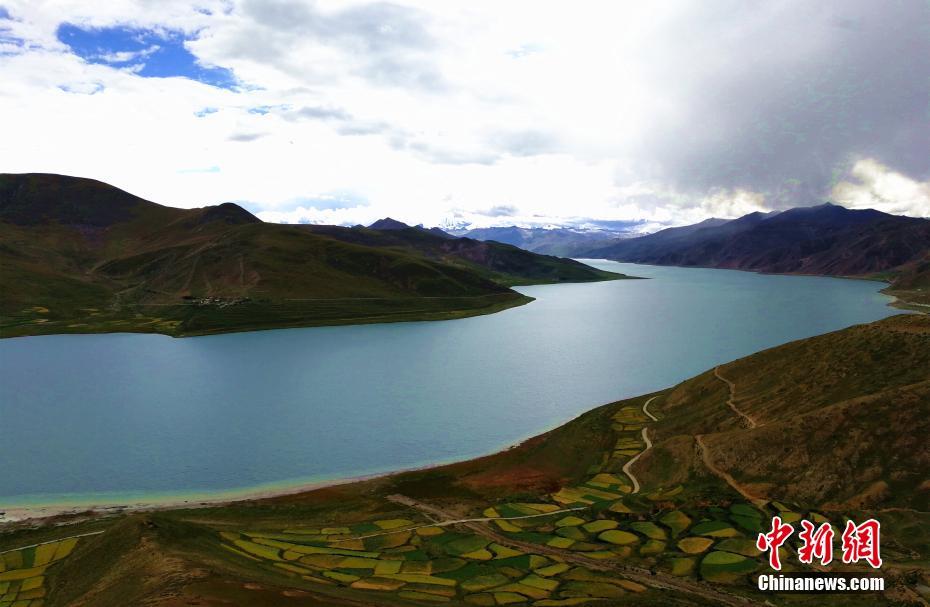 图为西藏山南市浪卡子县羊卓雍措边成熟的青稞地。 中新社记者 赵延 摄