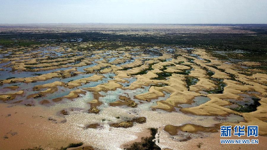 航拍库布其沙漠水生态治理区。新华网 发(张伟 摄)