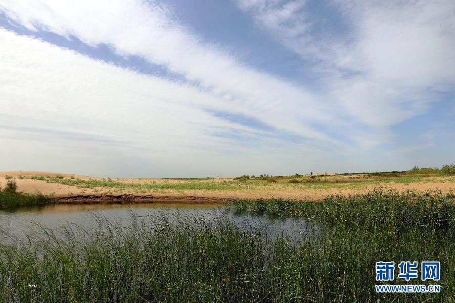 库布其沙漠腹地20多种植物自然恢复生长。(新华网 曹桢摄)