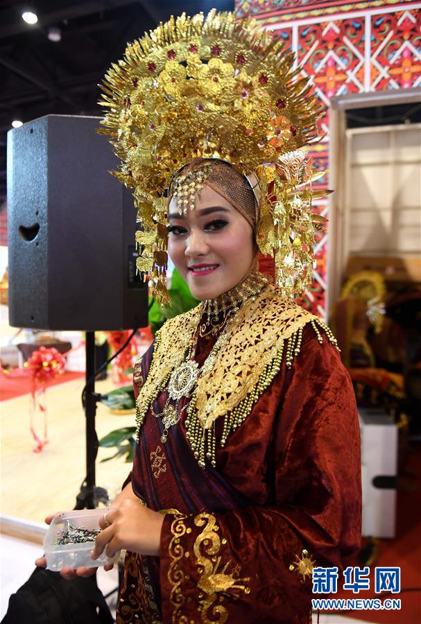 在广西南宁国际会展中心,一位来自印度尼西亚的姑娘身着本国服饰(9月12日摄)。