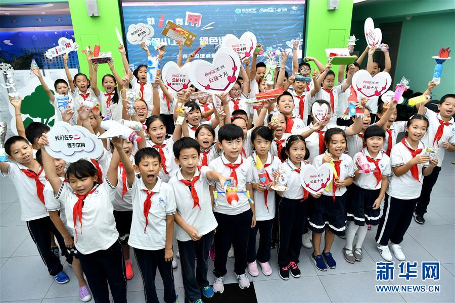9月14日,在北京白家庄小学科技园校区,学生展示用废旧饮料瓶做的手工制品。 当日,“我们在乎,源于本身——就(旧)凭(瓶)你有用环保行动”走进北京白家庄小学科技园校区,为同学们带来一堂绿色环保公开课。活动旨在通过“旧瓶变身记”,让小朋友们认识废旧饮料瓶安全回收和再利用的重要性,引导他们从小关注环境保护,助力生态环境可持续发展。 新华社记者李鑫摄