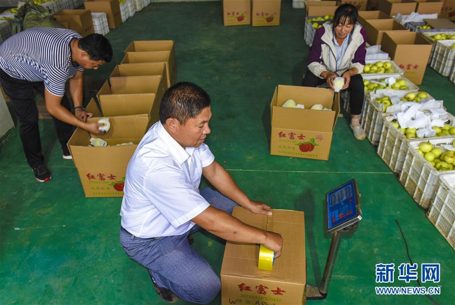 9月14日,河北景县一家公司工人将三优苹果进行打包。 近年来,河北景县深挖农业发展潜力,积极引进高科技农业项目,促进农业创新发展。从河北农业大学引进的三优富士苹果种植项目获得成功。“三优”即优良品种、优良砧木、优良栽培技术,三优苹果因其个大、形正、光洁,受到市场广泛欢迎。 新华社记者 李晓果 摄