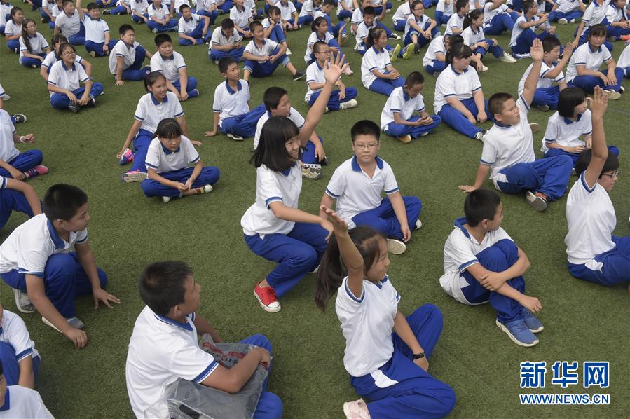 9月14日,三河市第七中学学生在观看评剧演出之后,抢答相关戏曲问题。 当日,“知声腔国粹 爱家乡文化”戏曲进校园活动走进河北省三河市第七中学。学生们通过观看评剧演出、与演员互动交流等方式,感受戏曲艺术魅力。 新华社记者鲁鹏摄
