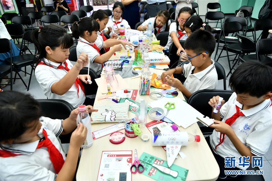 9月14日,在北京白家庄小学科技园校区,学生在环保公开课上用废旧饮料瓶做手工。 当日,“我们在乎,源于本身——就(旧)凭(瓶)你有用环保行动”走进北京白家庄小学科技园校区,为同学们带来一堂绿色环保公开课。活动旨在通过“旧瓶变身记”,让小朋友们认识废旧饮料瓶安全回收和再利用的重要性,引导他们从小关注环境保护,助力生态环境可持续发展。 新华社记者李鑫摄