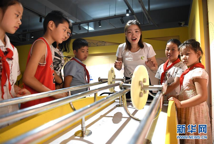 9月15日,在安徽省合肥市常青街道淝南社区举行的科普体验活动上,志愿者与孩子进行科普互动。 新华社记者 刘军喜 摄
