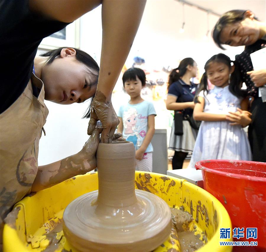 9月15日,在天津市河西区举行的全国科普日活动上,工作人员在展示陶艺制作。新华社记者 岳月伟 摄