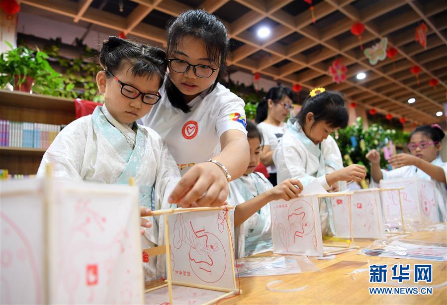 9月15日,竹西社区小朋友在制作传统灯笼。 新华社记者 刘军喜 摄