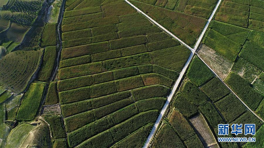 这是中宁县喊叫水乡满眼绿色的农田(9月6日无人机拍摄)。 新华社记者王鹏摄