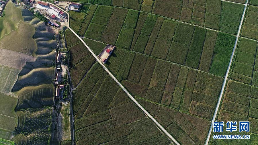 这是中宁县喊叫水乡满眼绿色的农田(9月6日无人机拍摄)。 地 新华社记者郭绪雷摄