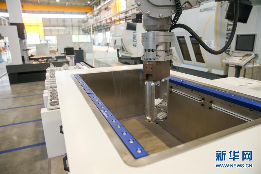 机器人在中国商飞公司总装制造中心智慧数控车间内作业(5月5日摄)。 新华社记者丁汀摄