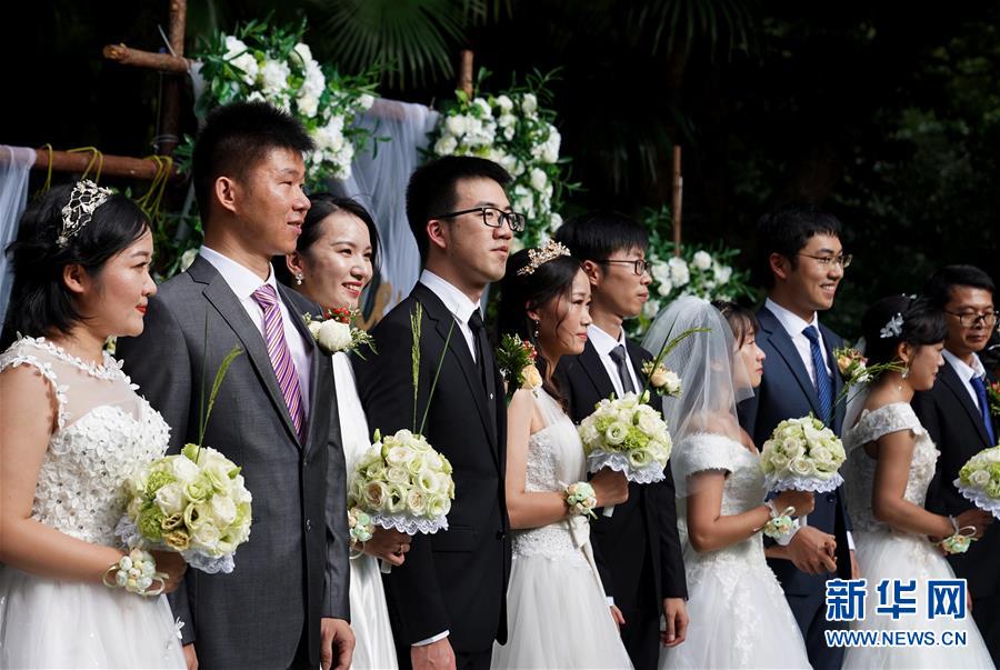 新人们在集体婚礼上(9月16日摄)。 9月16日,中国科学院上海分院举办第一届集体婚礼,来自上海分院系统8家研究院所的12对新人参加。 新华社记者 刘颖 摄