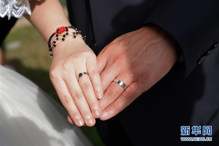 9月16日,12对新人婚戒镶嵌着的“钛宝石”,来源于中科院上海光机所自主研发的大尺寸钛宝石晶体。 当日,中国科学院上海分院举办第一届集体婚礼,来自上海分院系统8家研究院所的12对新人参加。 新华社记者 刘颖 摄