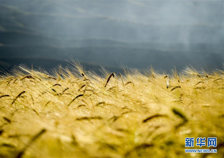 在新疆木垒哈萨克自治县天山木垒中国农业公园里,成熟的小麦在夕阳照射下散发出迷人的金色(8月26日摄)。 新华社记者 赵戈 摄