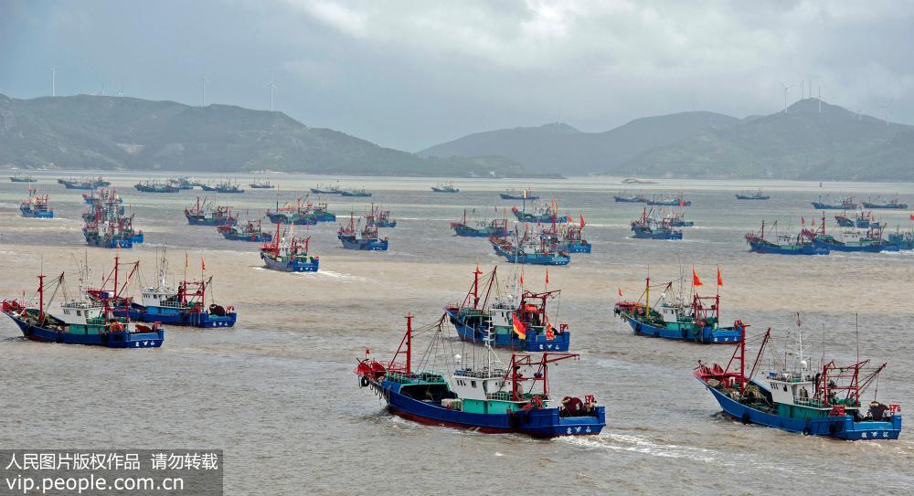 2018年9月16日,百舸争流赴渔场,渔民放鞭炮、开引擎,热闹出海。当日,东海伏季休渔期全面结束,各类作业渔船均投入今年新一轮捕捞生产。