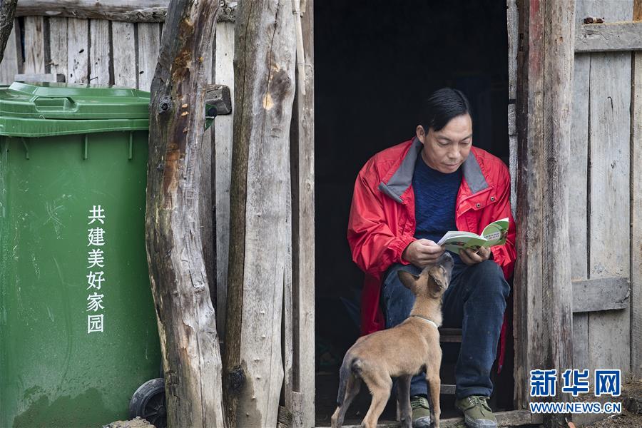 9月16日,杨修华坐在自家厨房门口翻阅农事手册。 新华社记者陶明摄