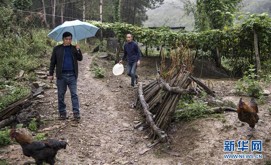 9月16日,杨修华(左)、杨修军弟兄俩在瓜蒌园里安排农事。 新华社记者陶明摄