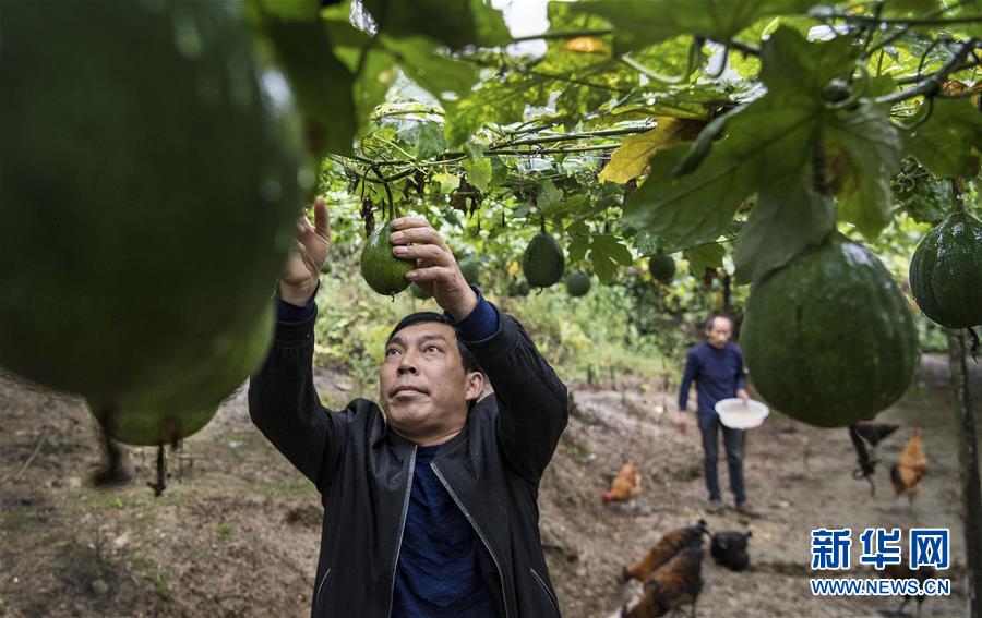 9月16日,杨修华在自己的瓜蒌园里修剪瓜藤。 新华社记者陶明摄