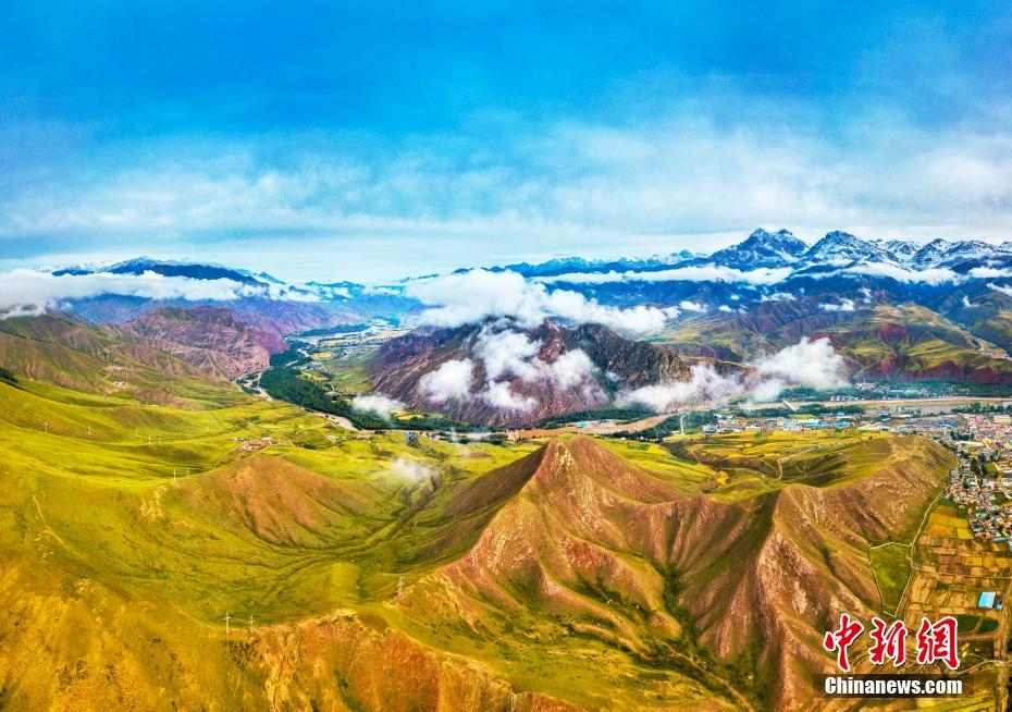 近日,航拍摄影爱好者在青海省海北藏族自治州祁连县进行拍摄,用航拍镜头记录了中国祁连山下的最美草原。祁连县位于青海省的东北部,北邻古丝绸之路的首要通道甘肃河西走廊,故有青海“北大门”之称。全县国土面积1.4万平方公里,共有草原1764万亩,是青海省畜牧业基地。进入金秋时节的祁连草原,阳光艳丽而温暖。祁连地区其多样性的地理地貌构成了具有草原、雪山、林海、峡谷、冰川等独特的原生态景观;悠久的历史、多样的民族宗教文化构成了多姿多彩的人文景观,使祁连县旅游资源具有原始性、神秘性、多样性、生态性兼容的特点,有着“天境祁连”、“东方瑞士”等美誉。宋新华 摄
