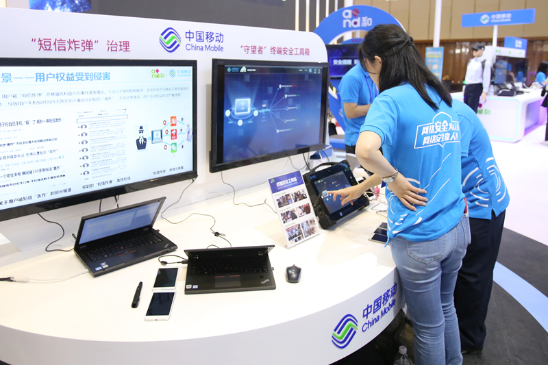图为2018年网络安全博览会上参展企业演示日常生活中易发生的网络安全问题。中国网信网 李旭 摄