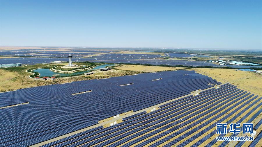 宁夏中卫市沙漠光伏产业园光伏电站(9月7日无人机拍摄)。 新华社记者王鹏摄