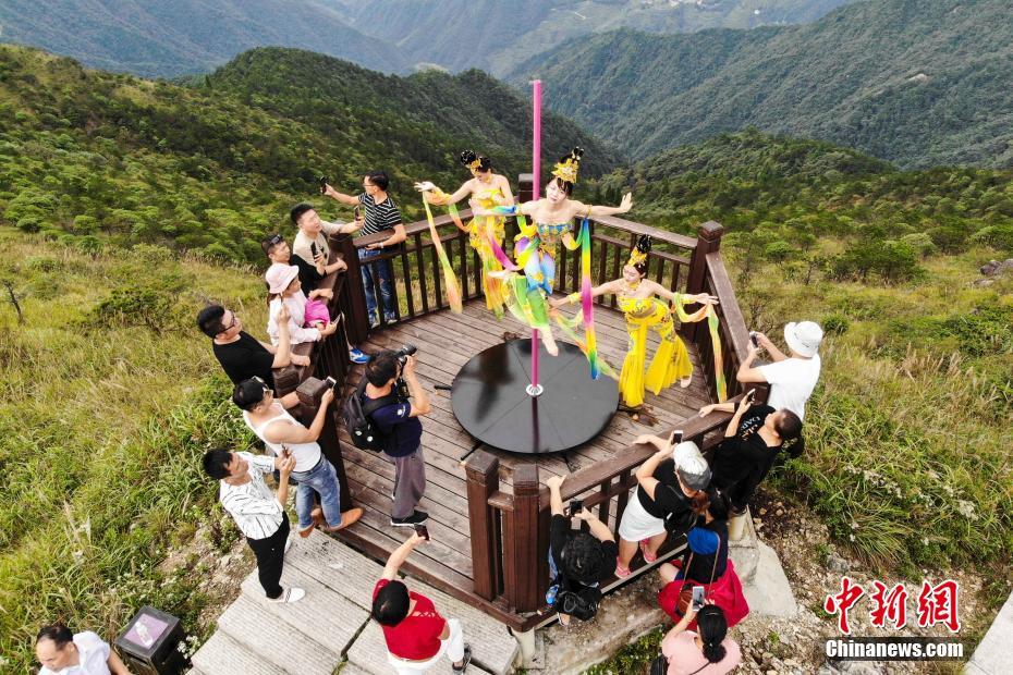 9月19日,中秋节前夕,位于长三角第一高峰海拔1929米的浙江龙泉山顶,一场柔美的钢管舞表演吸引了众人围观。